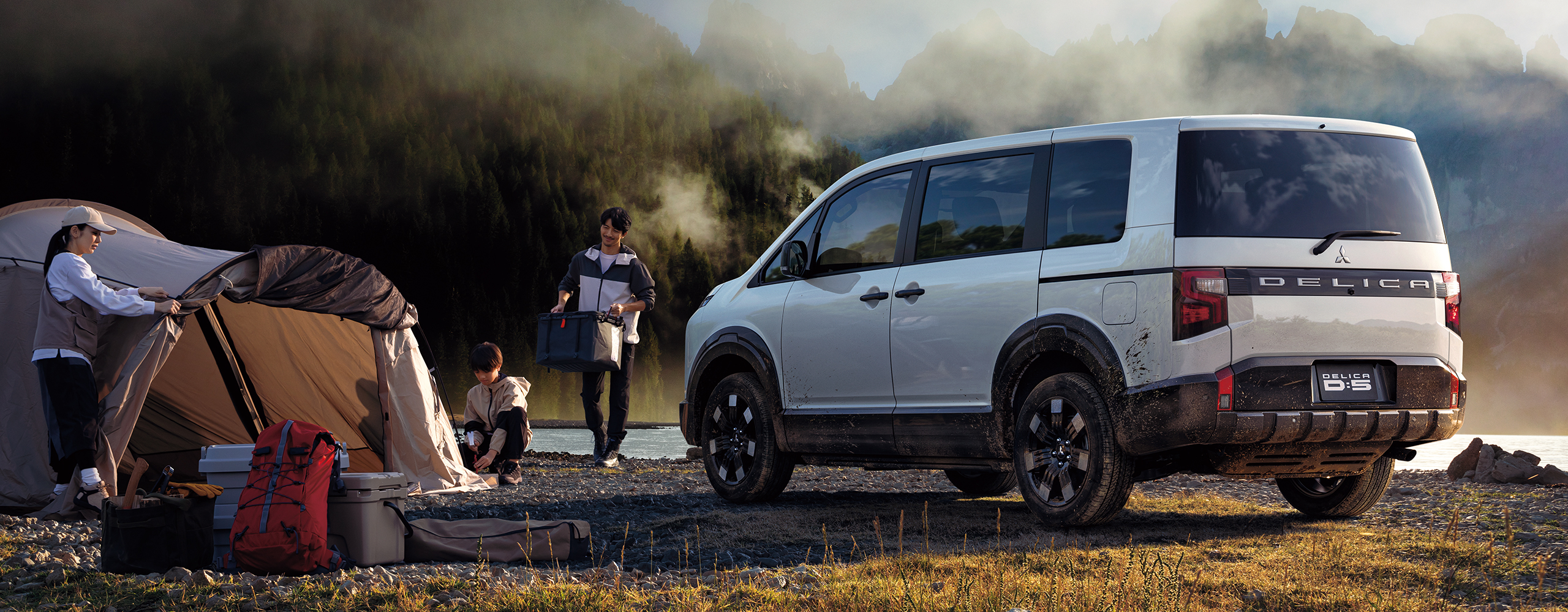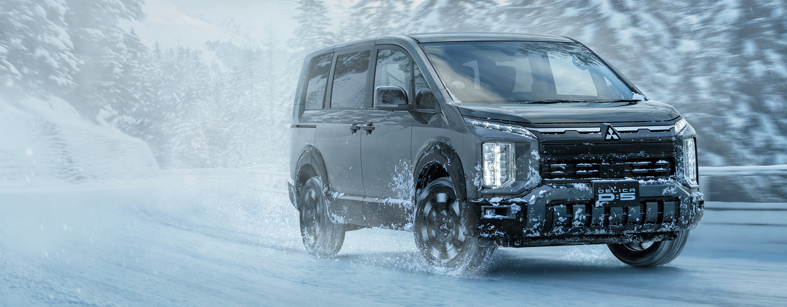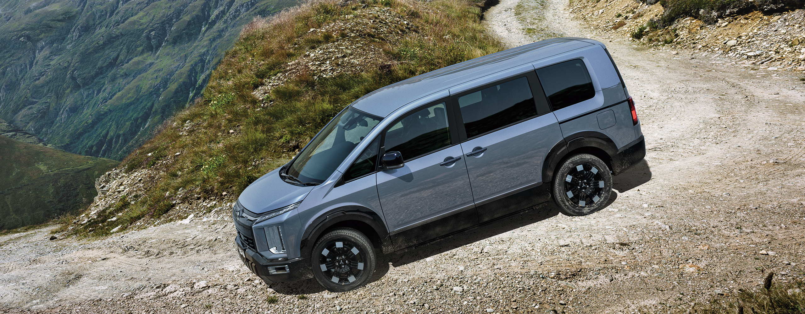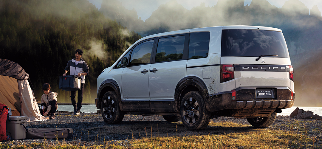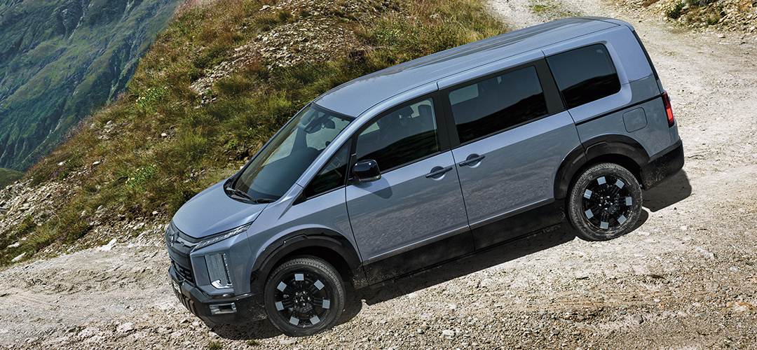 新採用の前後ホイールアーチモールでサイドビューに強いアクセントを与え、新デザインの18インチアルミホイールと相まってデリカの持つ比類なき走破性をアピールするデザインに変更。